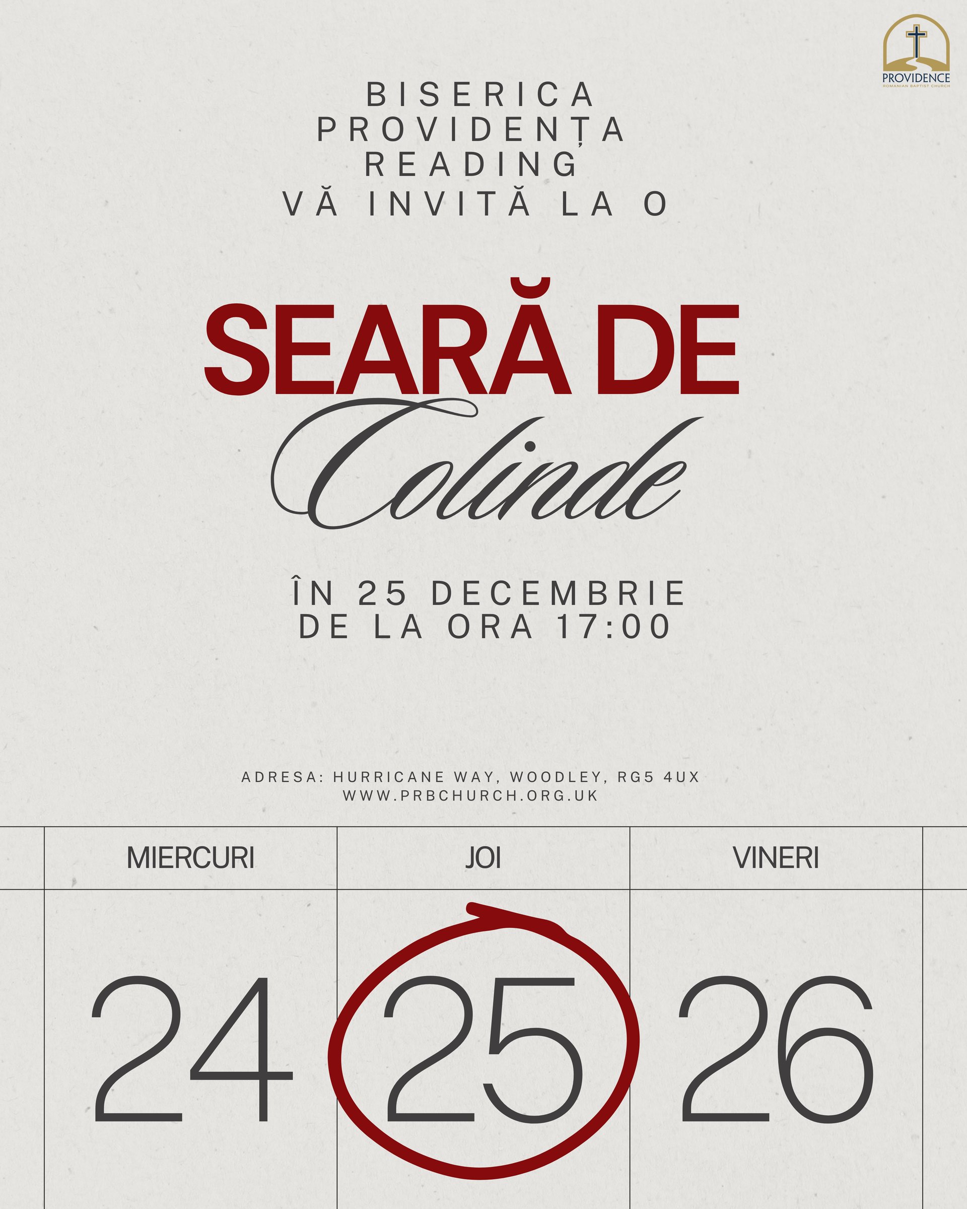 Te invităm în fiecare duminică de la ora 14:00 la închinare și în fiecare miercuri de la ora 19:00 la rugăciune.